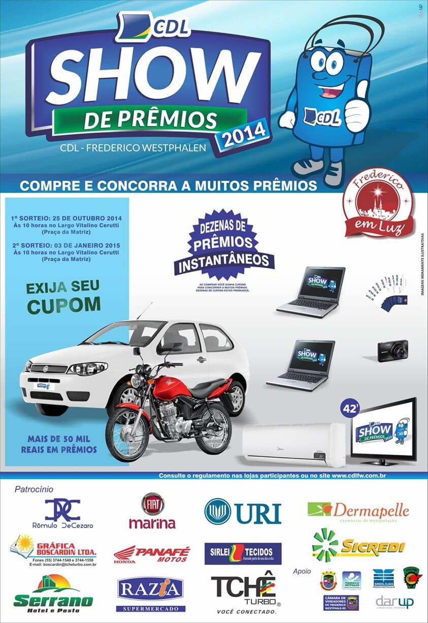 O sucesso da Campanha Show de Prêmios perdurou mais uma vez na 13ª edição da Campanha Show de Prêmios. Em 2014, mais de 50 mil reais em prêmios foram sorteados, sendo 94 empresas que fizeram parte da ação. Além de dezenas de prêmios instantâneos, a campanha premiou com um 0km, uma moto 0km, um climatizador, uma TV LED 42”, dois notebooks e uma câmera fotográfica. A ação movimentou o município, resultando em mais de 165.000 cupons distribuídos.