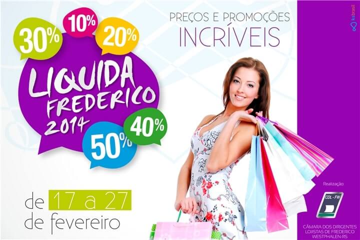 A maior liquidação do município também é uma ação promovida pela CDL-FW, que ocorre entre as duas estações do ano mais significativas para as vendas: o verão e inverno. Com o intuito de renovar e liquidar os estoques, o Liquida Frederico tem o papel de engajar lojistas para propiciar descontos de até 50% e condições especiais de pagamento, que movimentam o setor comercial e oportunizam benefícios à população.