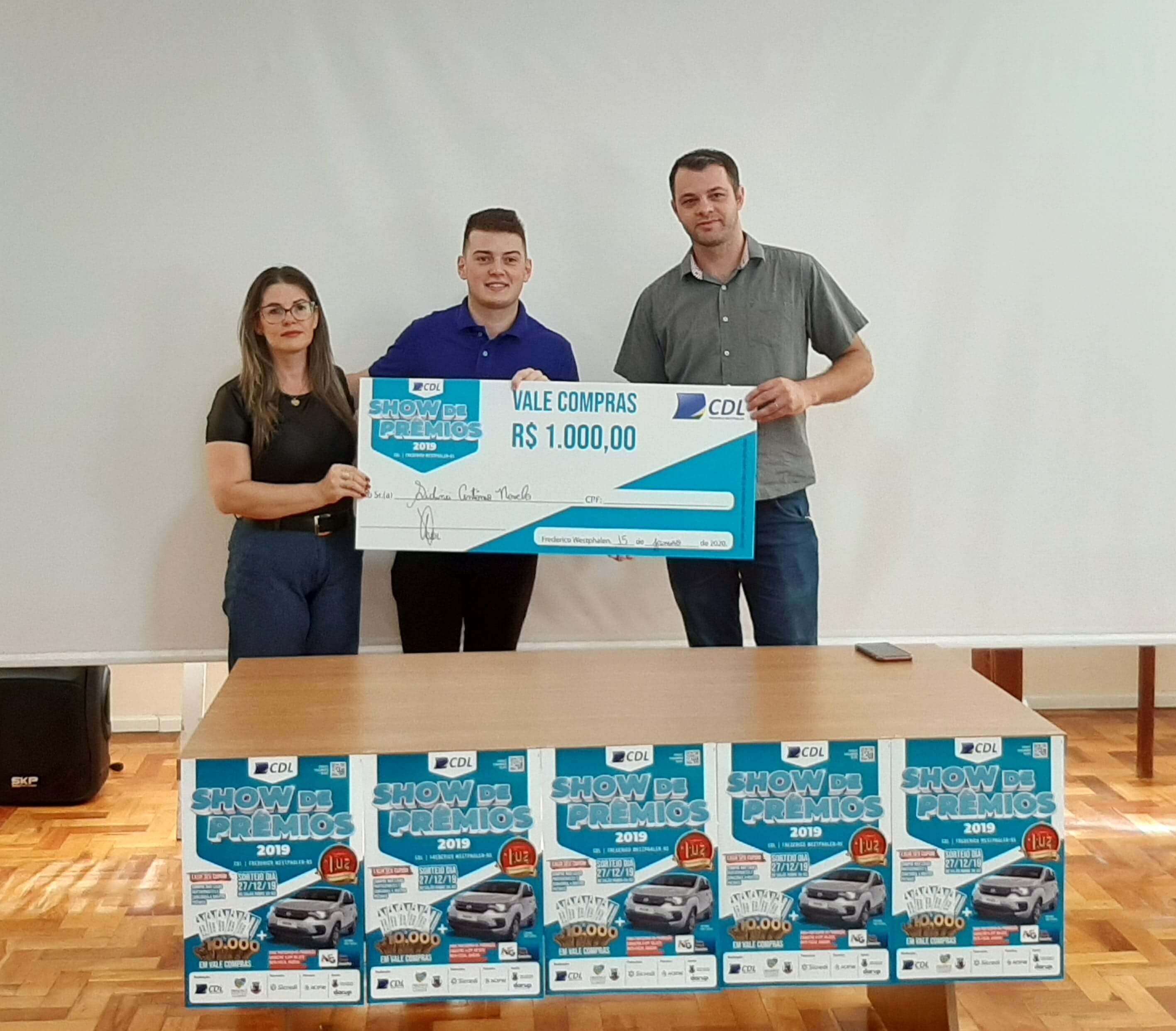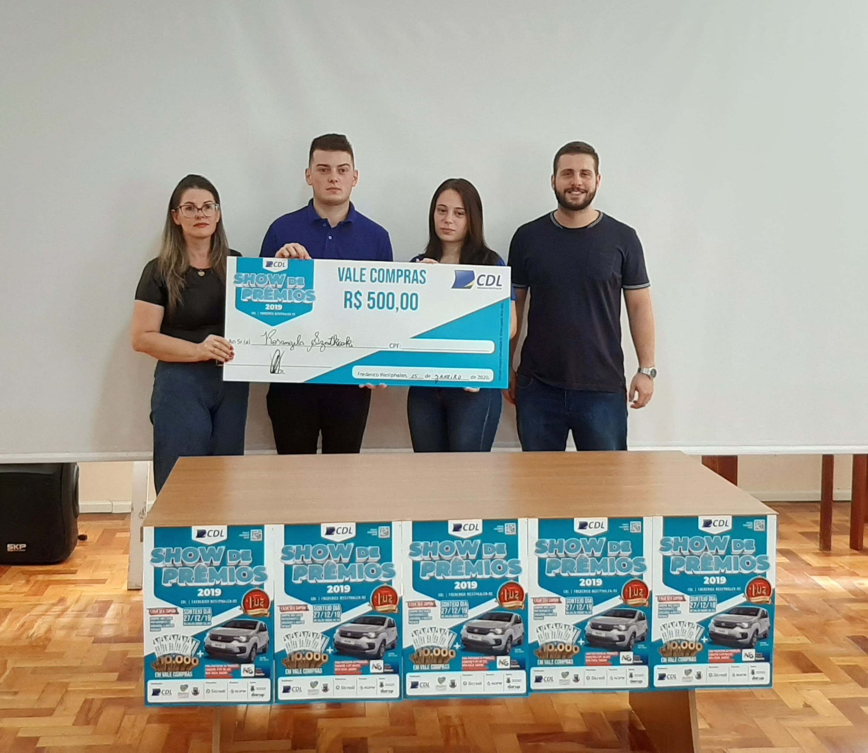Após mais de três meses de realização da Campanha Show de Prêmios 2019 pela Câmara de Dirigentes Lojistas de Frederico Westphalen (CDL-FW), hoje, 15, ocorreu o encerramento e a premiação dos ganhadores. Foram 18 vales-compras entregues, de R$ 3.000,00 a R$ 50,00, que poderão ser gastos na empresa em que o contemplado foi sorteado, possibilitando o fomento do comércio local. Entre os premiados estão vendedores e clientes que tiveram as suas cautelas sorteadas no dia 27 de dezembro. A CDL-FW também já premiou nesta segunda-feira, 13, a professora Ivete A. de Almeida com um carro Fiat Mobi 0km e a vendedora da cautela, Ana Paula Sponchiado de Lima com um vale-compras de R$ 500,00. A entidade já realiza esta ação há 17 edições gratificando ganhadores com casa, automóveis, Tvs, computadores e outras bonificações, com o intuito de atrair e valorizar o setor comercial do município.