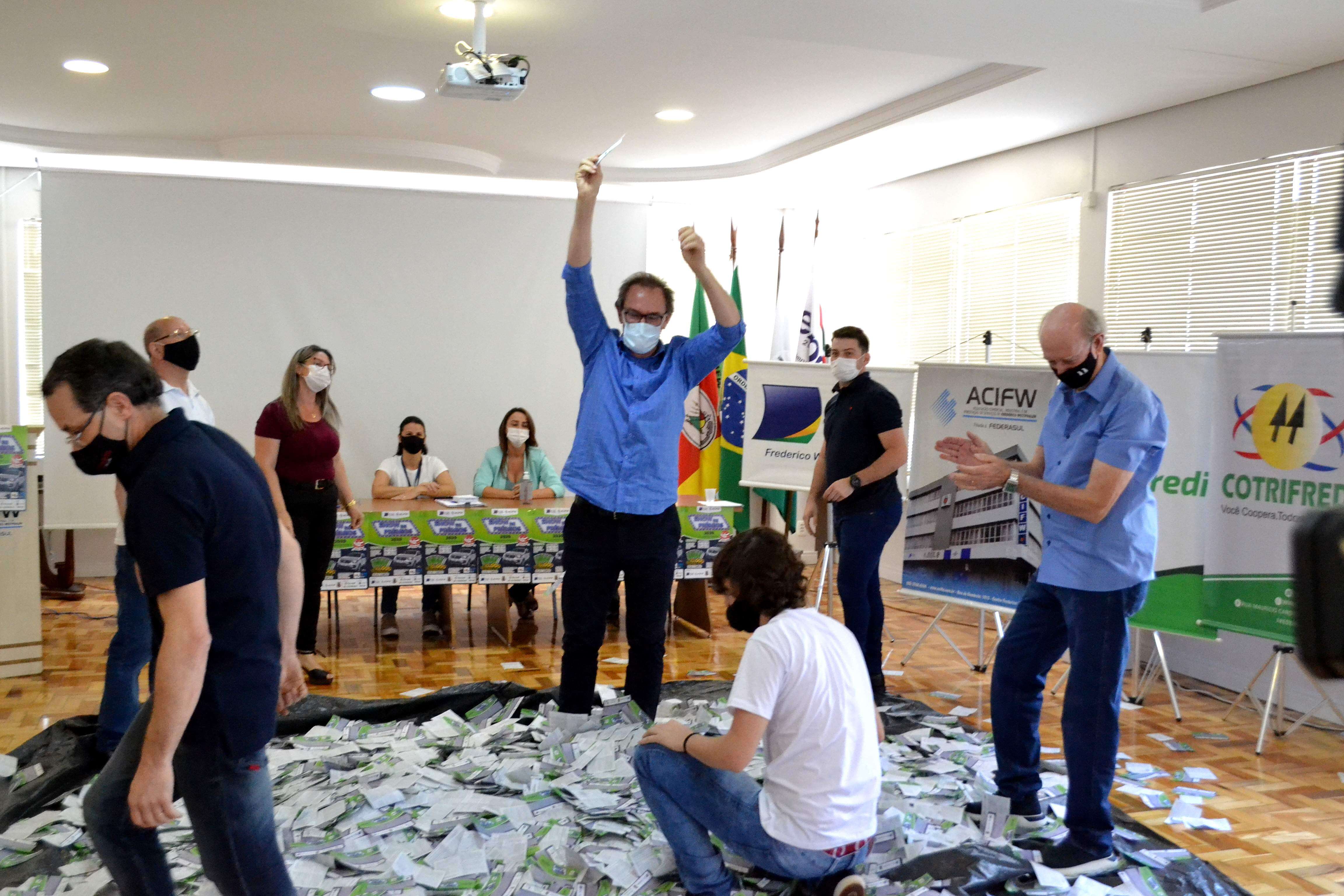 Aconteceu na manhã desta terça-feira, 29, o sorteio da 18ª edição da Campanha Show de Prêmios, realizado pela Câmara de Dirigentes Lojistas de Frederico Westphalen (CDL-FW), pela Associação Comercial, Industrial e de Prestação de Serviço (ACIFW) e pela Prefeitura de Frederico Westphalen, com patrocínio da Sicredi Alto Uruguai RS/SC/MG e Cotrifred, e o apoio da Câmara de Vereadores de FW e da Agência Darup – Comunicação Integrada. O sorteio aconteceu no salão nobre da ACIFW e reuniu autoridades e colaboradores que trabalharam na realização da campanha. Além disso, a premiação foi prestigiada por inúmeras pessoas de forma on-line, através das redes sociais das entidades e da imprensa local que se fizeram presente.