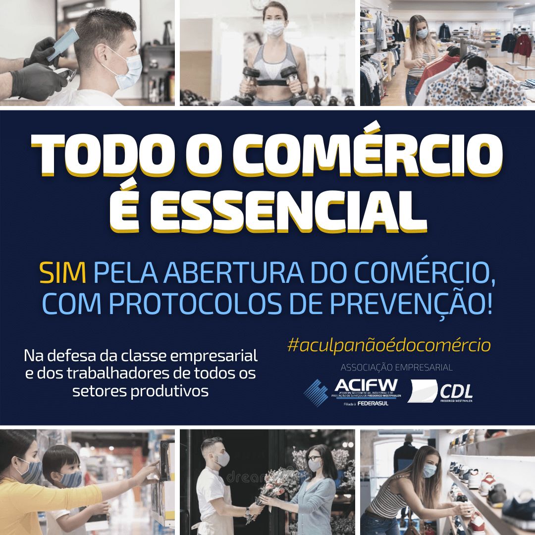 Com o slogan “Todo o comércio é essencial”, as ações na região buscam alertar para a importância da liberação das atividades presenciais para todos os setores produtivos, seguindo com todos os protocolos sanitários de prevenção. “Este é um gesto de pressão e sensibilização aos nossos governantes, apoiado pelos nossos associados, que aderiram prontamente à mobilização regional. Sabemos que não é o comércio, com todos os seus protocolos sanitários, que é o grande responsável pela elevação das contaminações. A paralisação das atividades comerciais, em especial, e de todos os setores produtivos, significa agravar a crise econômica e social sofrida pelos negócios locais”, destaca Patricia Cerutti, Presidente da AE/FW.
